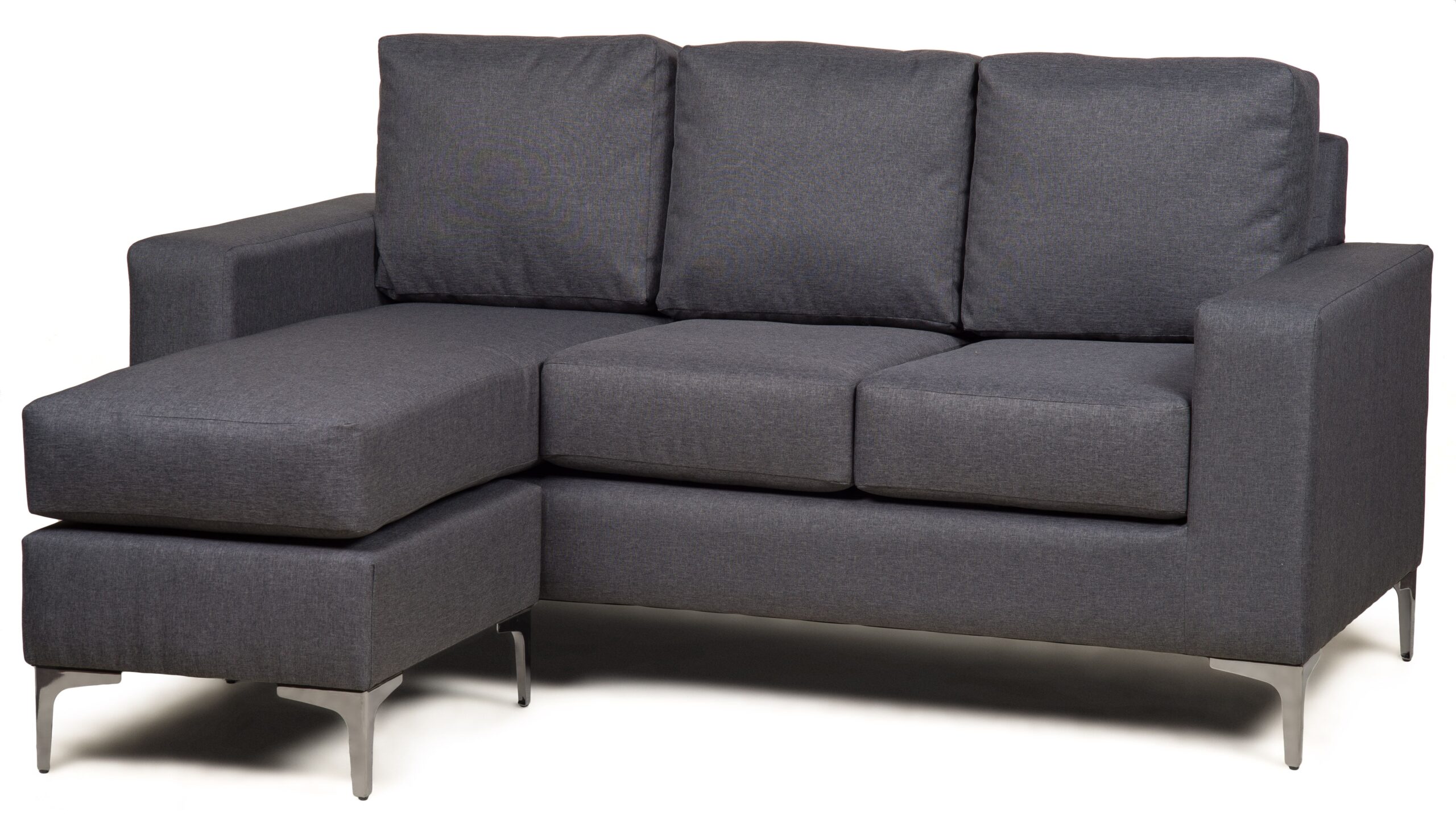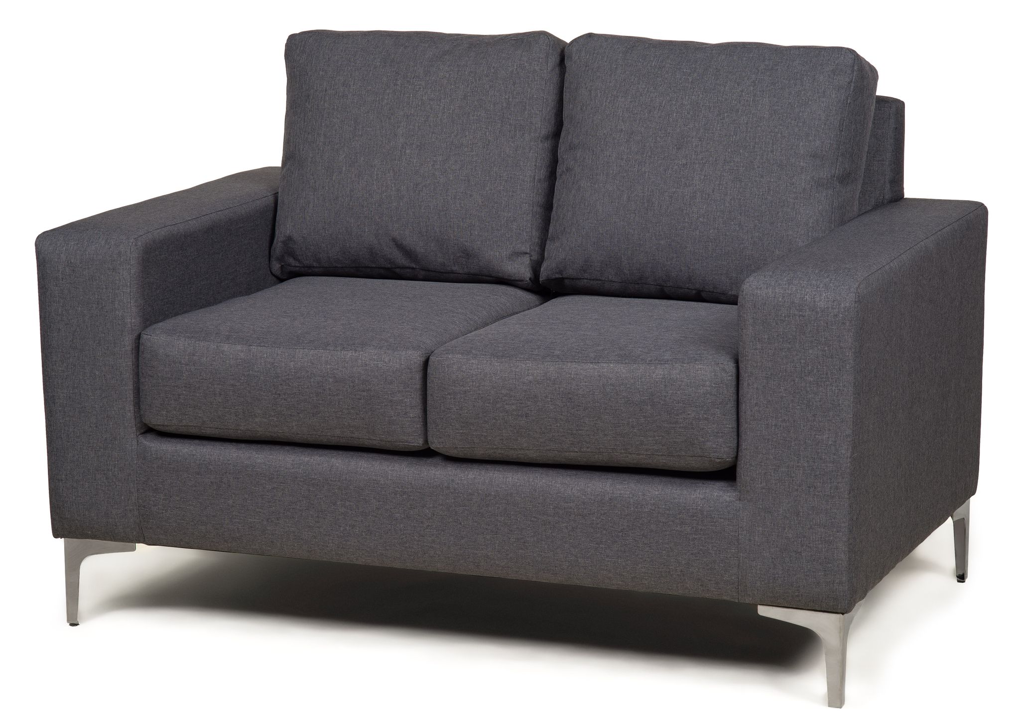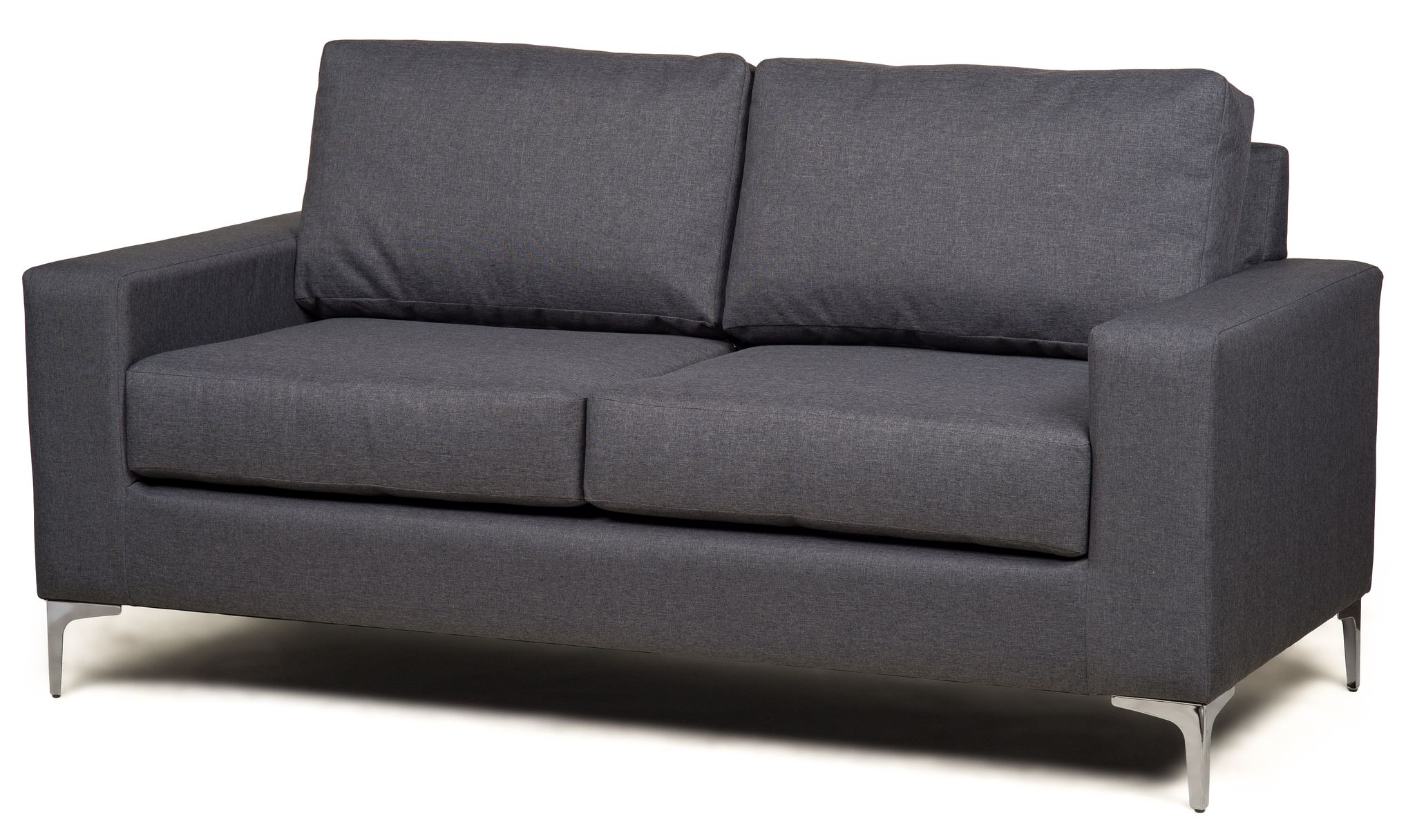 Uk made sofas and tailored in linen styled hard wove fabric. The Baltimore is a modern sofa with clean lines in Grey fabric, with styled chrome plinth feet. The Falcone fabric is soft and hard-wearing with a 50,000 test abrasion score. Great for any room or setting these hard-wearing sofas are perfect for home or workspaces.